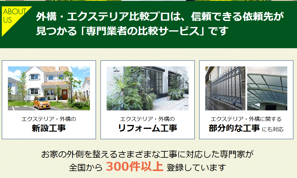 総合リフォームの比較サイトではなく、外構・エクステリア分野に特化している点も魅力です。