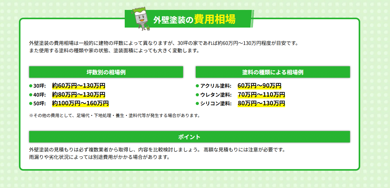 初めて塗装を依頼する人にとって、相場を知れることは大きな安心材料です。