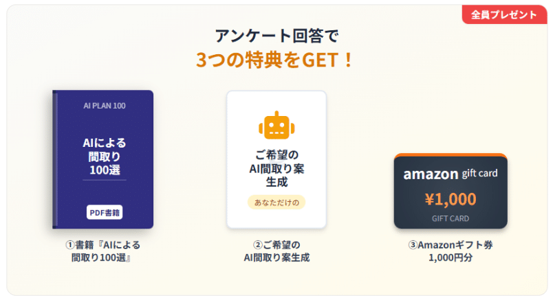 AI間取りやギフト券など、家づくり情報収集の後押しになる特典あり。