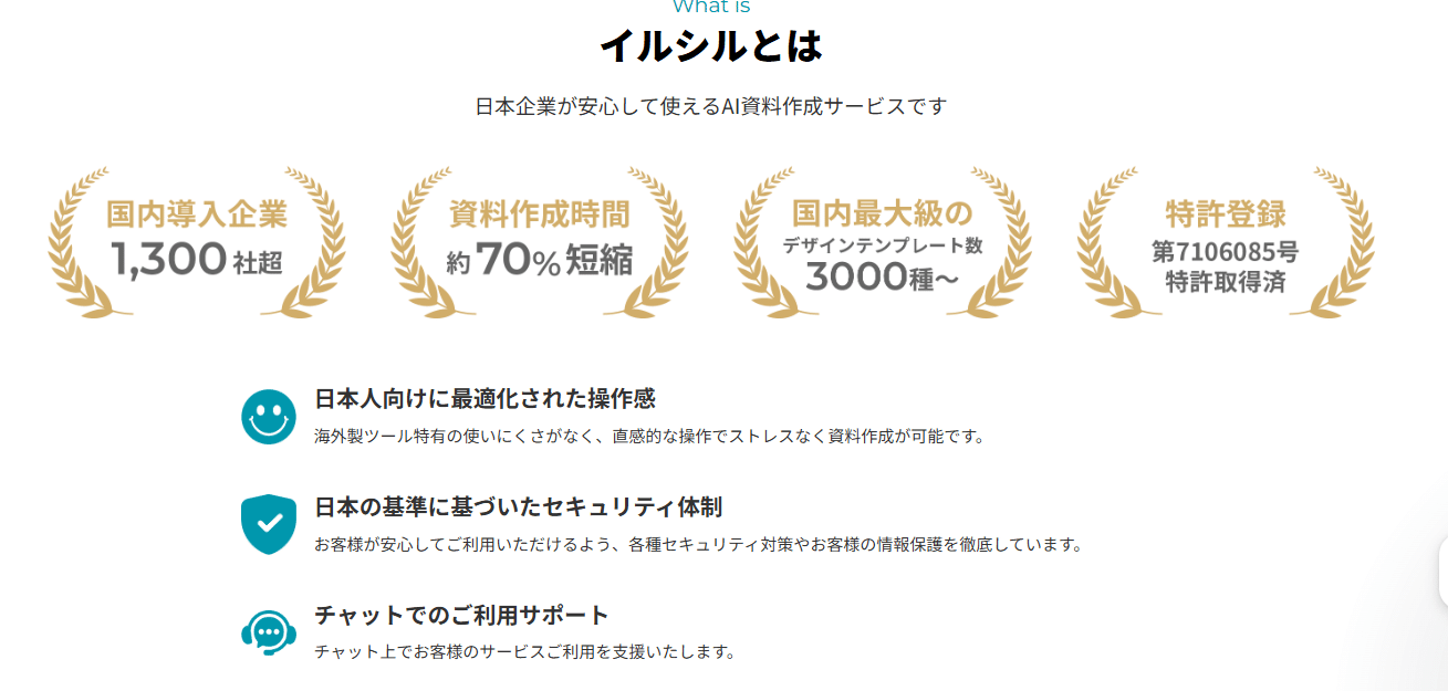株式会社イルシル**が提供する、日本企業向けに最適化されたAI資料作成サービスです。