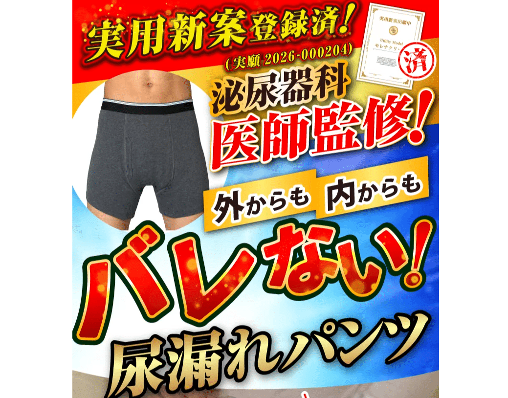 「外出中に少し漏れてしまわないか不安」「市販の失禁用品は見た目やゴワつきが気になる」――そんな悩みを抱える男性に向けた尿漏れ対策パンツとして登場したのがモレナクリーンです。公式LPでは、泌尿器科医師監修、最大150ml吸水、普通の下着のように見えやすいデザインなどが訴求されており、見た目と機能性の両立を重視した商品であることがわかります。