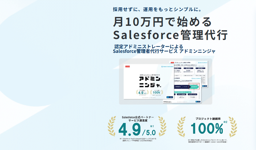 「Salesforceの管理が属人化している」「専任を雇うほどではないが日々の運用が重い」——そんな現場の“あるある”に、月額定額で管理者(アドミン)業務を丸ごと外注できるのが「アドミンニンジャ」。