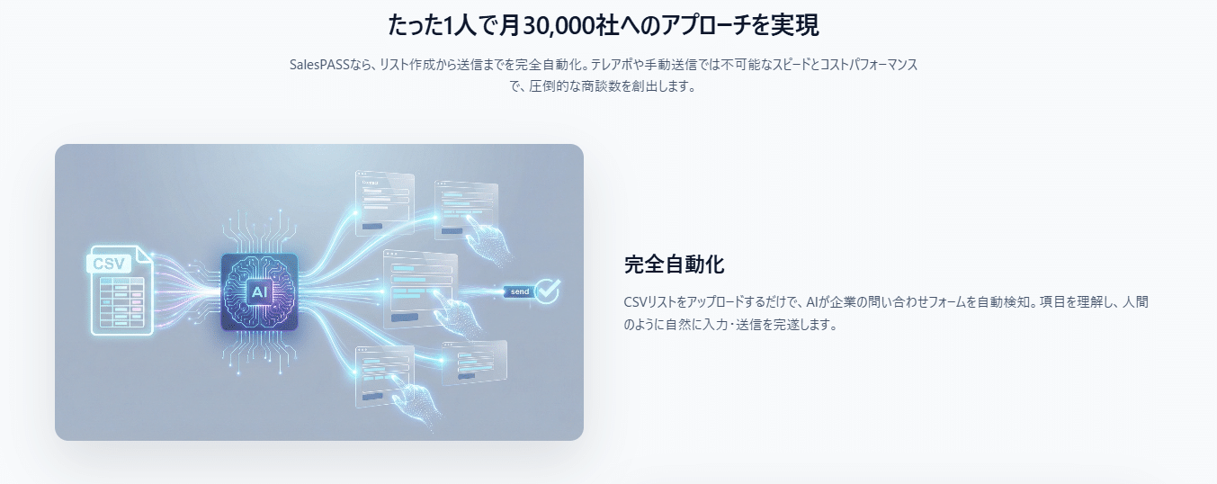 SalesPASSは、フォーム営業を「とにかく数打てる状態」にしてくれる自動化ツール